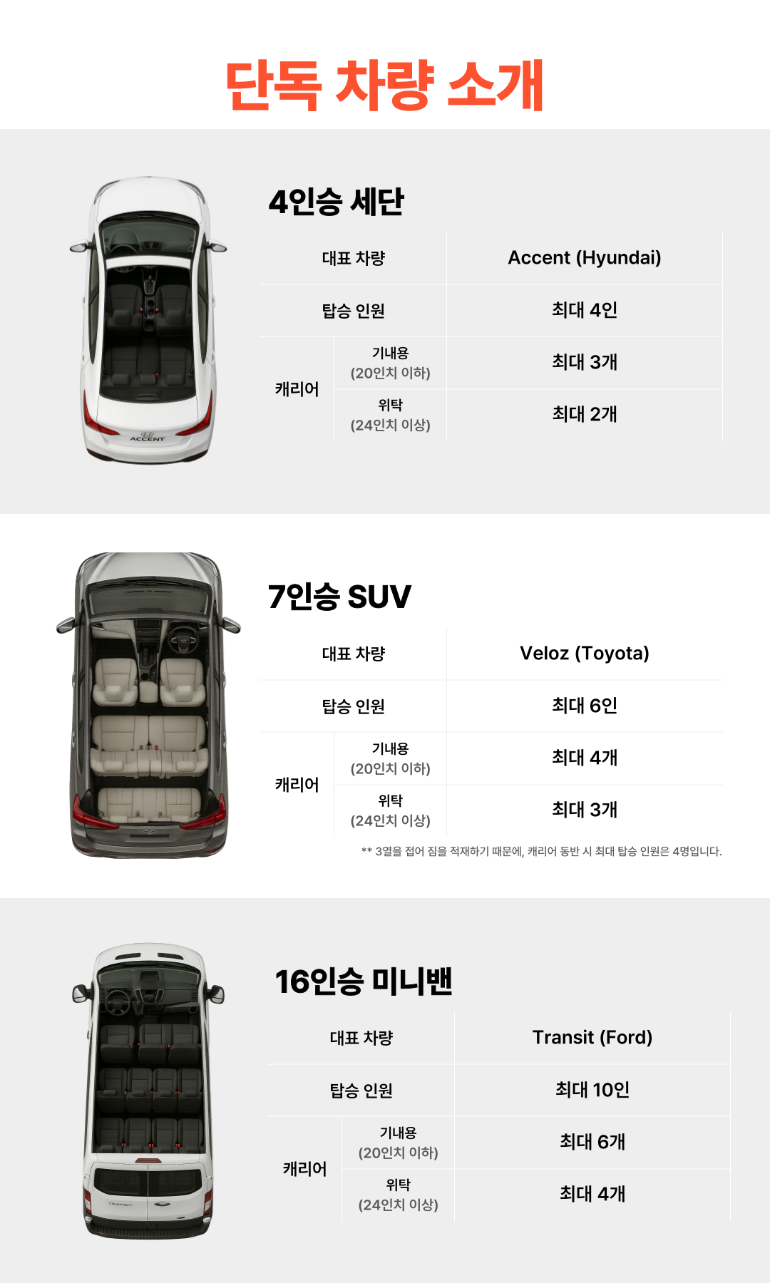 현지 기사님께서 운전해주시는 4인승 픽업/샌딩