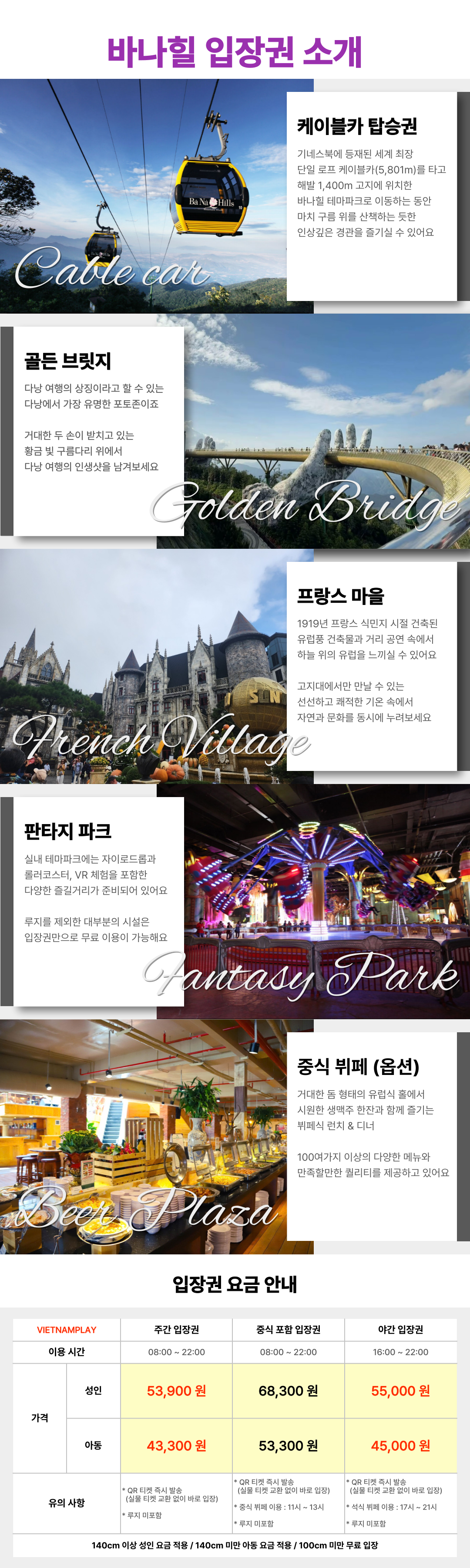 다낭 시내에서 약 40분 거리, 해발 1,400m 의 고지대에 위치한 프랑스식 테마파크입니다.