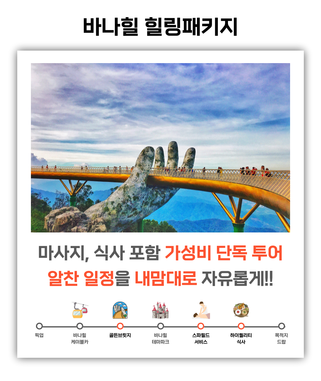 일행들끼리만 자유로운 일정으로 관광할 수 있는 바나힐 힐링패키지가 준비되어 있습니다.