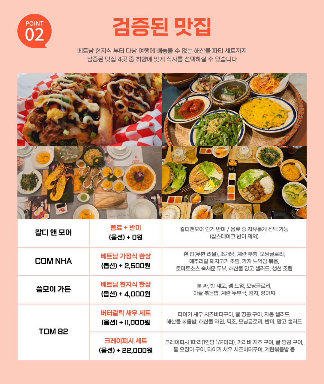 - 식사, 쇼핑, 마사지, 이발소 등 다낭 여행 필수 코스만