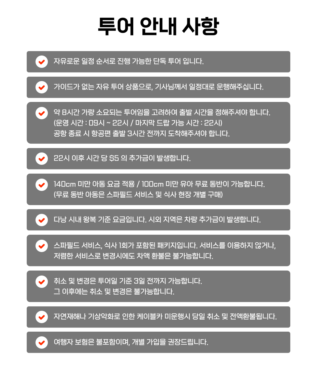 * 유의 사항 및 취소 환불 규정을 예약 전 꼭! 확인해주세요!!