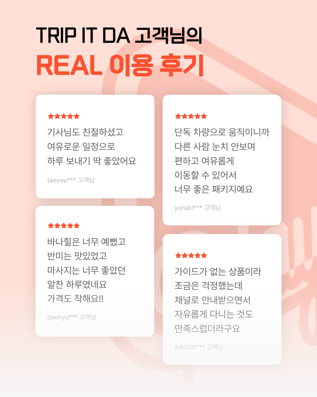 가이드 없이도 충분히 더 자유롭게 즐기실 수 있습니다.
