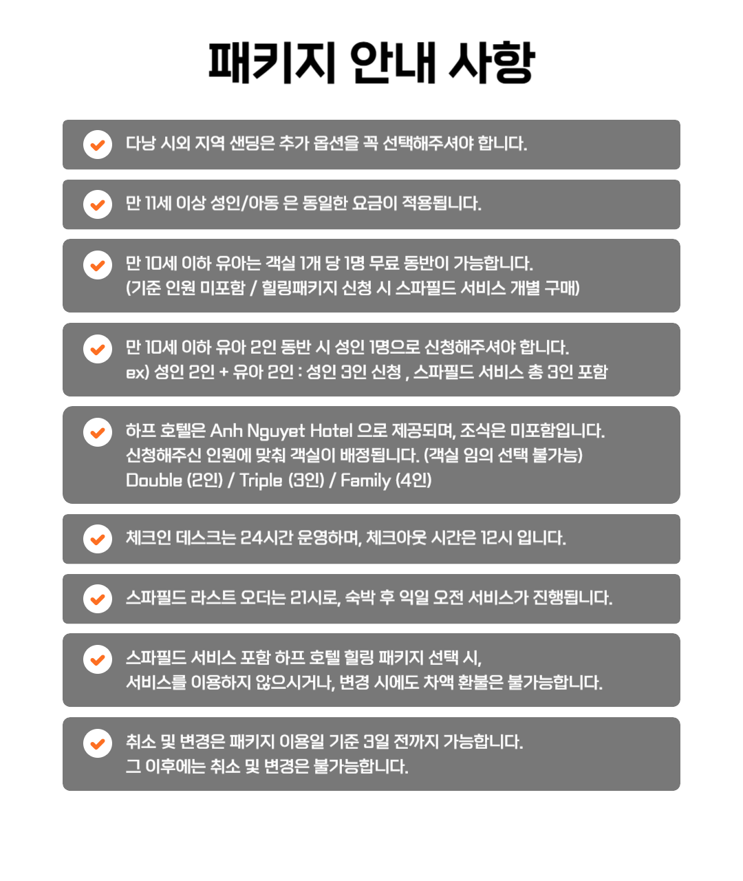 ⭐ 다낭 하프 호텔 스타트팩 포함 사항