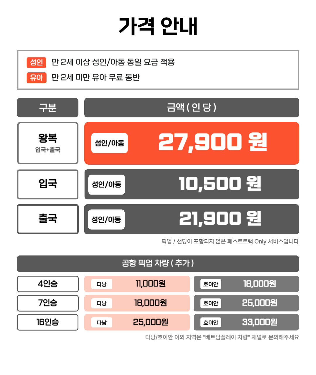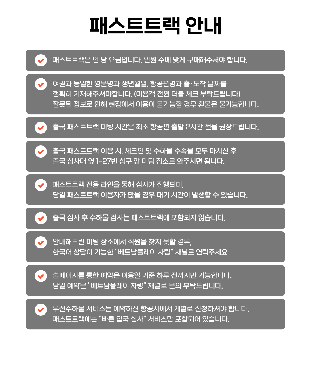 ⭐ 베트남플레이 패스트트랙 포함 사항