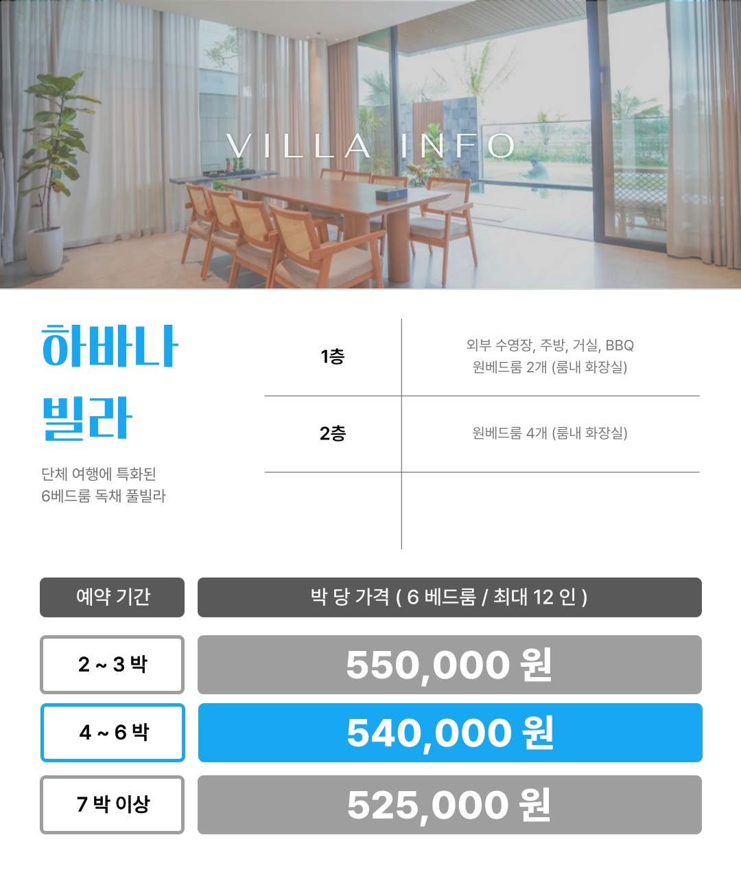 * 풀빌라 전체 (객실 6개) 사용 요금