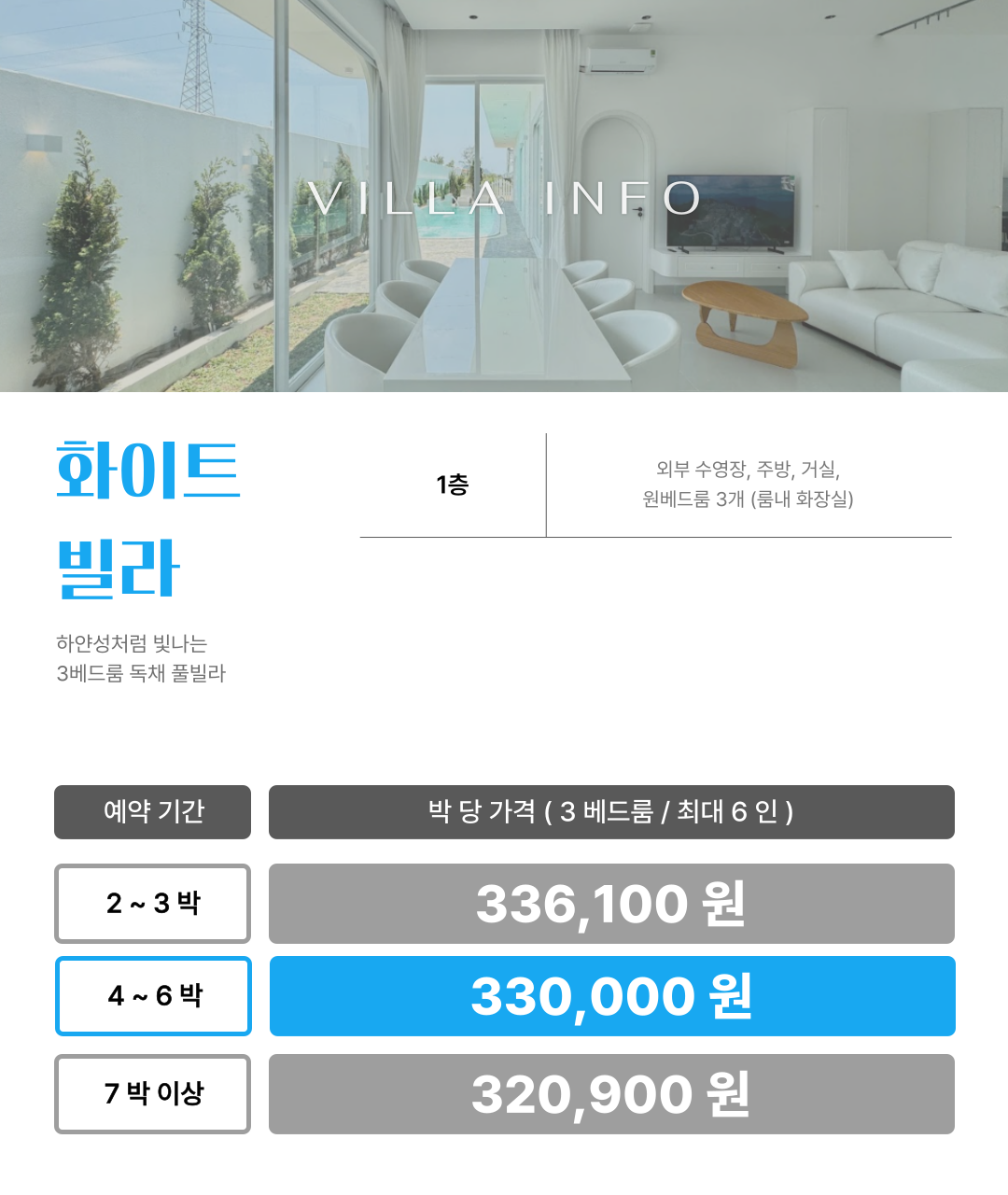 * 풀빌라 전체 (객실 3개) 사용 요금