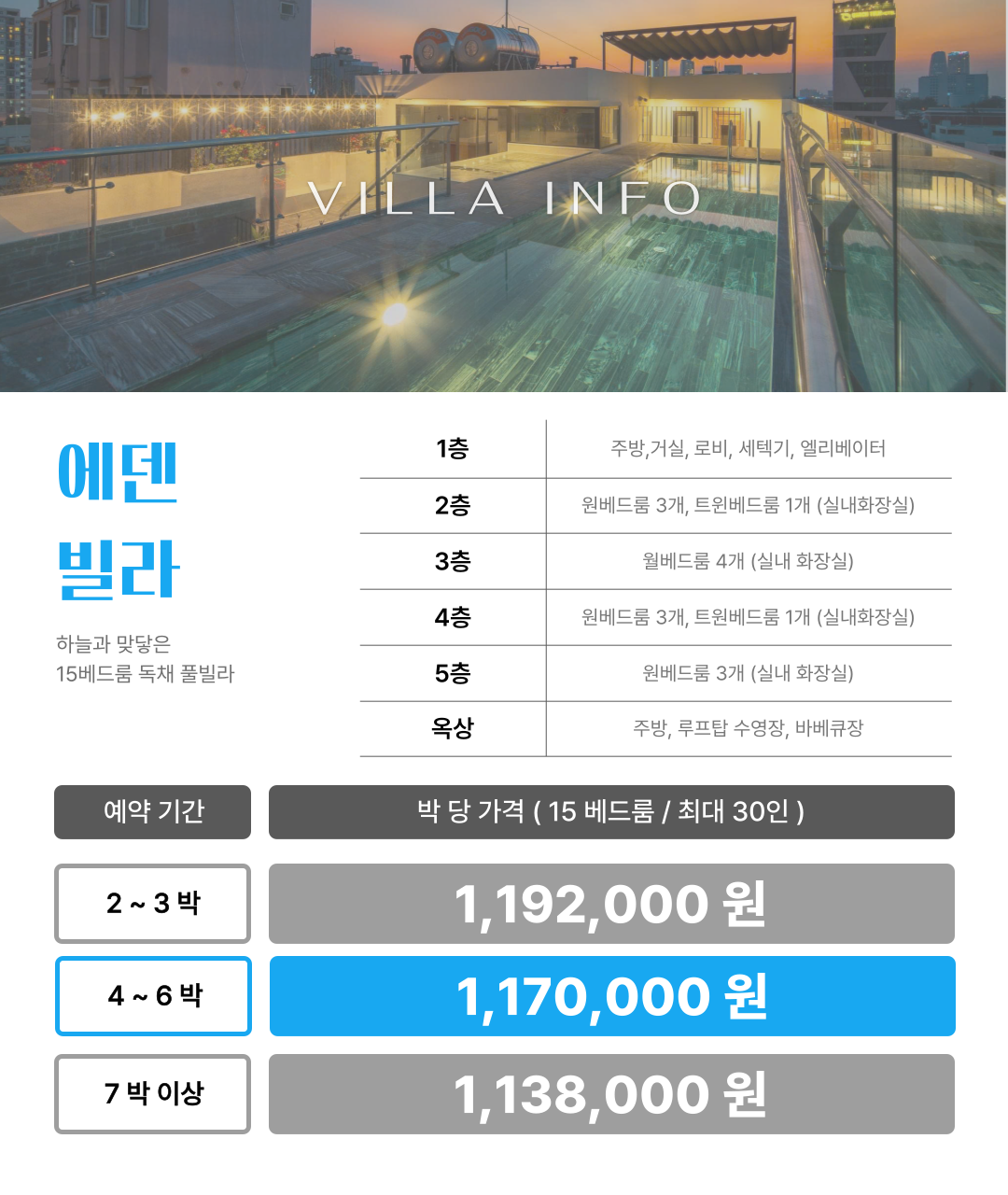 * 풀빌라 전체 (객실 15개) 사용 요금