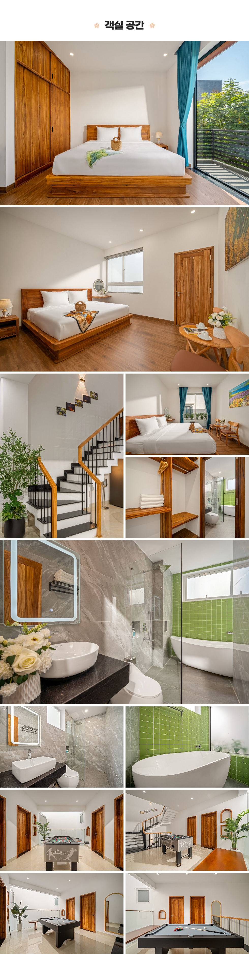 체크인 : 15시 체크아웃 : 11시 * 풀빌라 전체 (객실 8개) 사용 요금 * 객실 당 최대 2명 / 총 16인까지 숙박 가능 * 청소, 공항 픽업 요금 포함 ❗ 최소 2박 이상 예약 가능합니다 🎁 TRIP IT DA 무료 픽업 안내 - 모든 풀빌라 예약 고객 공항 픽업 / 샌딩 무료 (총 2회) 🎁 TRIP IT DA 이용 고객 특전 - 식사, 쇼핑, 마사지, 이발소 등 다낭 여행 필수 코스만 모아 놓은 VIP 할인 쿠폰 발급 (예약 확정 후 카카오 채널에서 쿠폰을 수령해주세요) ⭐ 원하시는 숙박 일수에 맞는 상품으로 예약해주세요 1. 체크인 / 체크아웃 날짜 선택 2. 숙박 일수에 맞는 상품을 선택 3. 결제 페이지로 이동 ⭐ 결제 후 "베트남플레이 호텔" 채널로 연락해주세요 - 예약 확정 및 주소 등 체크인 정보 안내